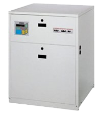 Маломощные холодильные машины с ротационными или спиральными компрессорами и пластинчатыми теплообменниками. Переключение режимов тепло-холод осуществляется посредством реверсирования холодильного цикла.
