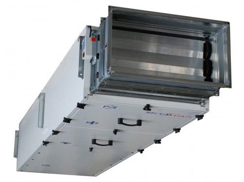 Пластинчатый рекуператор обеспечивает эффективное использование тепла удаляемого воздуха с последующей экономией затрат на нагрев приточного воздуха.